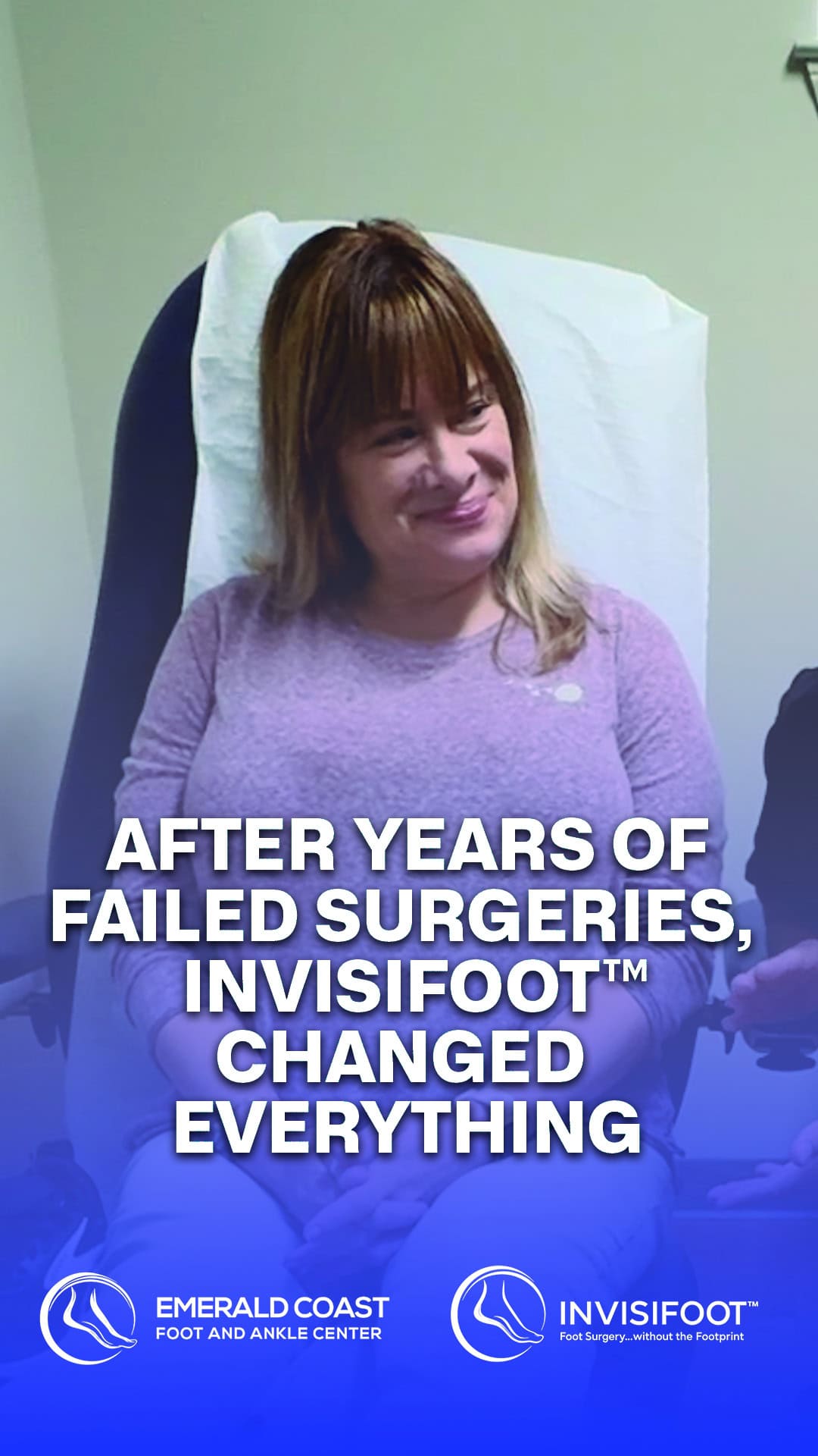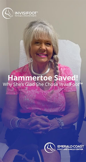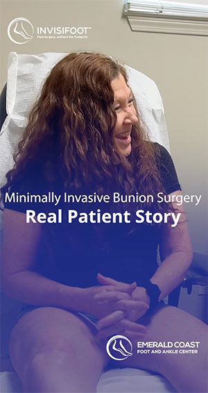 InvisiFoot™ is our exclusive, minimally invasive technique for treating bunions, hammertoes, bunionettes, neuromas, and bone spurs — all performed in-office with a tiny incision, no screws or plates, and same-day walking recovery, only at Emerald Coast Foot and Ankle Center in Pensacola.